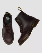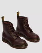 Eine originale DM’s Ikone, neu interpretiert mit texturiertem Crazy-Horse-Leder. Diese Version des klassischen 1460 besteht aus dunkelrotem Cherry-Red-Leder mit zweifarbigem Effekt, der sich mit jedem Tragen weiter entwickelt. Antikgoldene Ösen und farblich passende Schnürsenkel unterstreichen den zeitlosen Look. Abgerundet wird der Stiefel durch die originale, luftgepolsterte Dr. Martens Sohle und die charakteristischen gelben Rahmennähte. Ein echter Klassiker, der mit jedem Tragen besser aussieht.