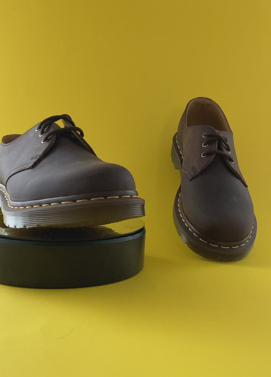 Dieser klassische 3-Loch Halbschuh gewinnt durch sein naturbelassenes Used-Look Leder, die typische gelbe Goodyear Rahmennaht und die bequeme Dr. Martens Air Cushion Sohle an Kult.
