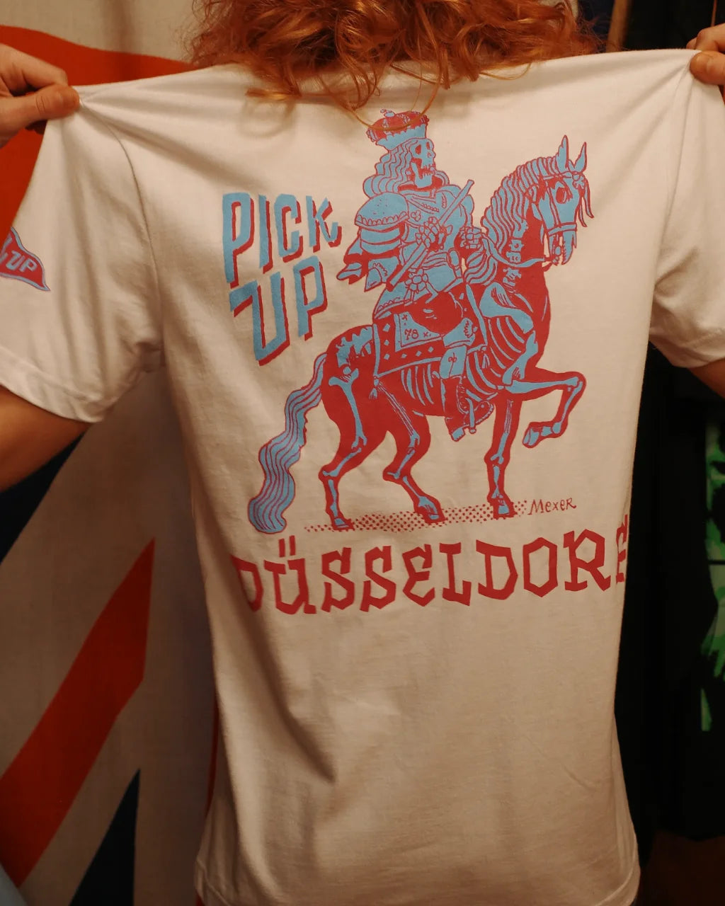 Hinten: großflächiger Reiter mit „PICK UP“ und „DÜSSELDORF“.