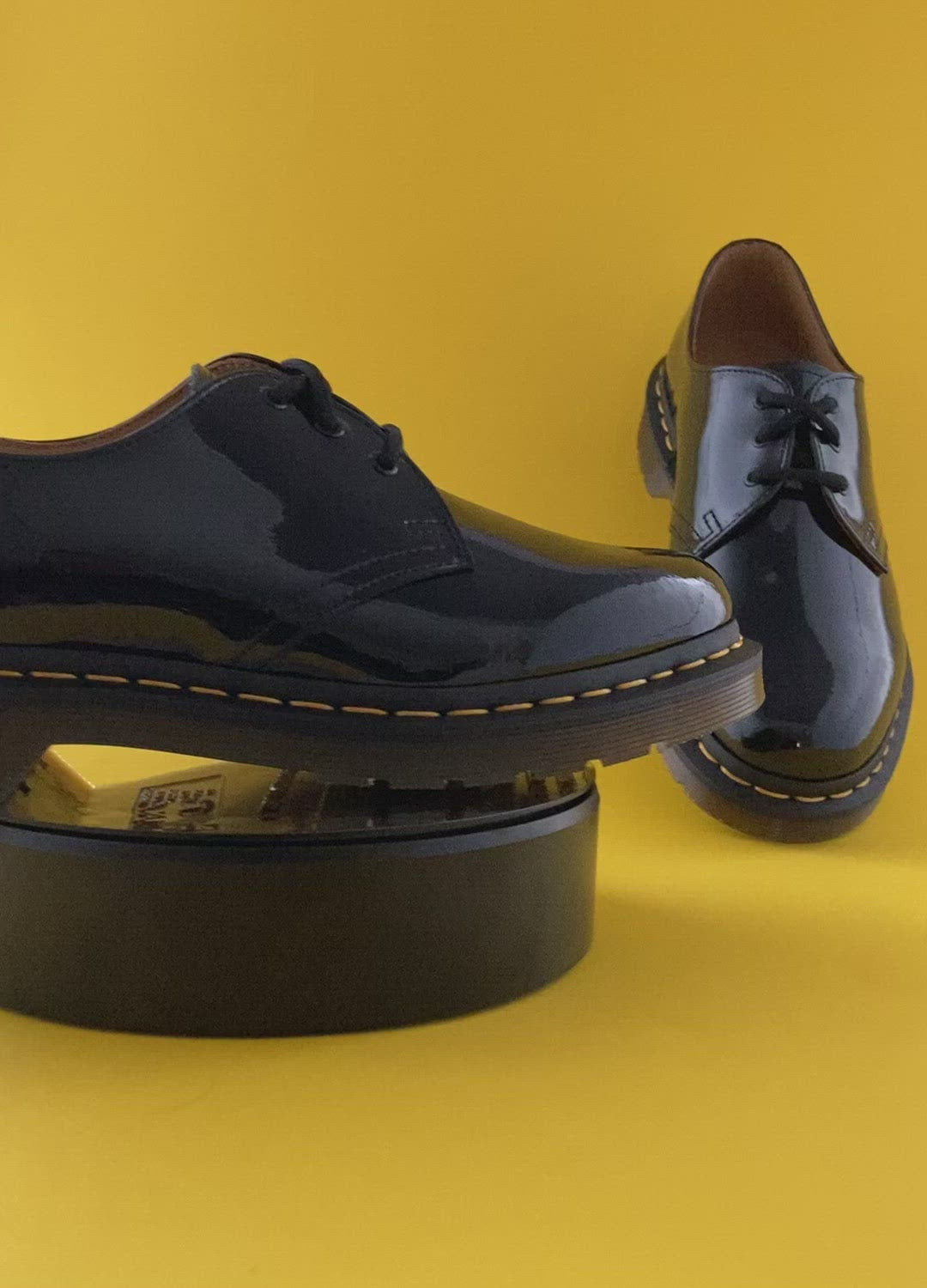 Dieser 3- Loch Halbschuh von Dr. Martens ist aus schwarzem, hochglänzenden Lackleder gearbeitet, die typische gelbe Rahmennaht und bequeme Air Cushion Sohle ergänzen schönes Design mit einzigartigem Komfort. Die etwas schmalere Passform verleiht diesem Modell eine grazilere Optik als du sie von den Unisex Modellen von Dr. Martens kennst.