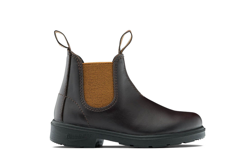 Der Blundstone #2591 begeistert mit seinem warmen braunen Leder und den toffee-farbenen Elastiks, die an die sanften Töne von Karamell erinnern. Der süß-warme Look macht ihn zum idealen Begleiter – ob beim Spielen im Freien oder auf Familienausflügen. Das wasserabweisende Leder schützt kleine Füße zuverlässig, während die leichte, flexible Sohle für hohen Komfort und uneingeschränkte Bewegungsfreiheit sorgt. Robust, bequem und stylisch zugleich – der #2591 ist der perfekte Boot für kleine Abenteurer mit Sinn für Stil.
