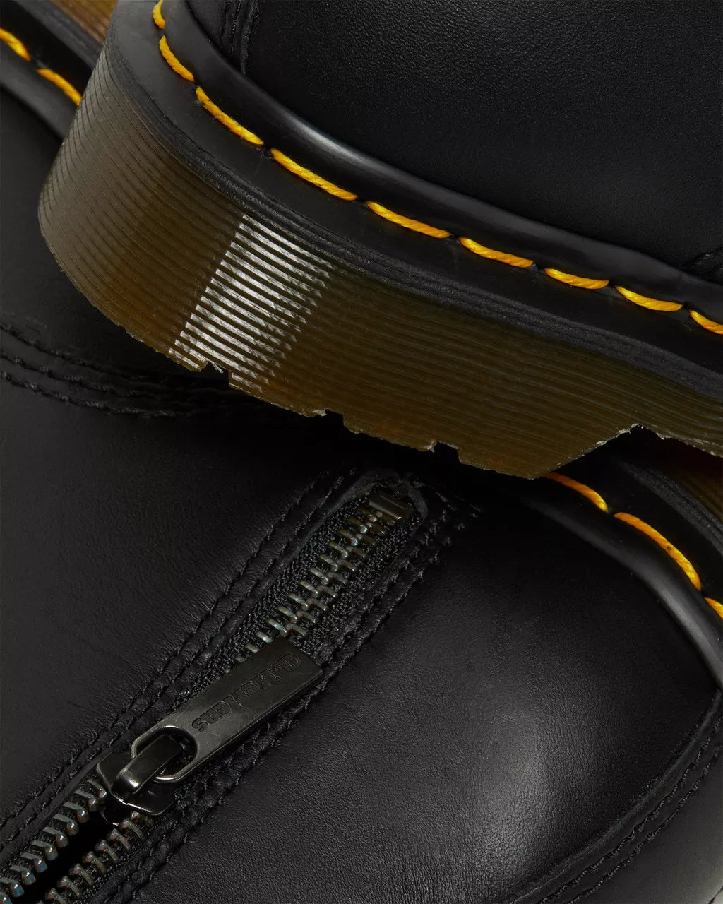 Der 1460 Pascal Zip ist eine moderne Interpretation des legendären 8-Loch-Stiefels von Dr. Martens. Alle typischen DOCS DNA-Details sind dabei: gelbe Rahmennaht, geriffelte Seiten, beschriftete Fersenschlaufe – kombiniert mit einem cleanen Schaftabschluss ohne Bindung. Das Besondere dieser Version: ein Vorderreißverschluss für einen markanten Look und besonders leichtes An- und Ausziehen.