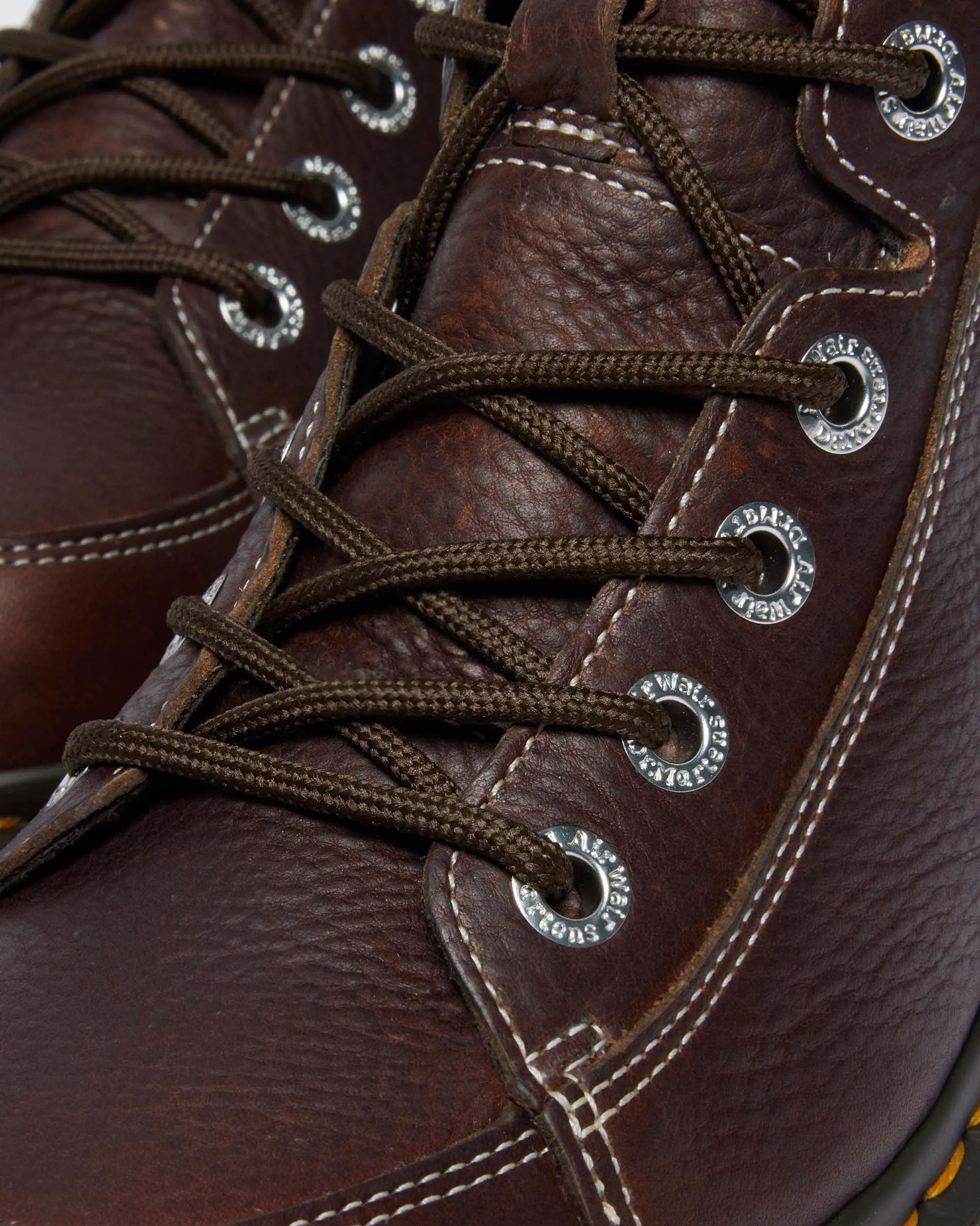 Der Buzz 8i übersetzt klassische Dr. Martens-DNA in einen robusten Utility-Look: 8-Loch-Schnürung mit Hiker-Hardware (Ösen & Speed-Hooks), gepolsterter Schaft und eine markante Plattform-Außensohle mit geriffelten Seiten. Die gelbe Rahmennaht, die beschriftete Fersenschlaufe und die AirWair-Laufsohle liefern den unverwechselbaren Docs-Auftritt und zuverlässigen Komfort im Alltag.