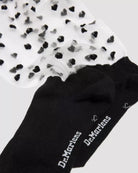 Diese kurzen Mesh-Socken mit Herzmuster setzen ein bewusst verspieltes Statement. Gefertigt aus einer weichen Bio-Baumwollmischung in Kombination mit leichtem, atmungsaktivem Mesh. Die aufgestickten Herzen sind so platziert, dass sie oberhalb von Boots oder Schuhen sichtbar bleiben und den Look gezielt auflockern – cute, aber klar Dr. Martens.
