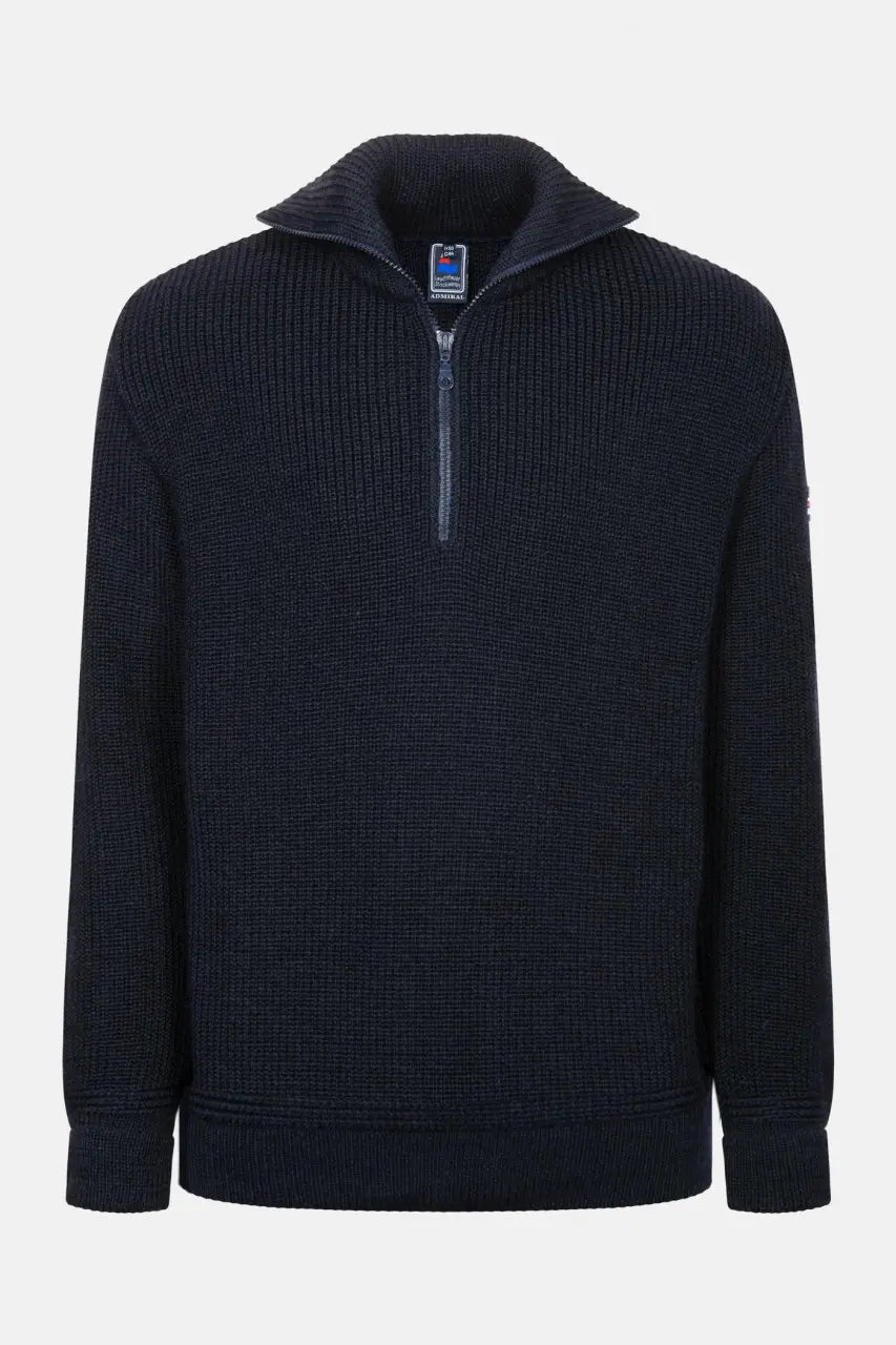 Ein Klassiker, der nie aus der Zeit fällt. Der Admiral ist mehr als ein Pullover, er ist ein Stück norddeutsche Handwerkskunst, übersetzt in moderne Alltagstauglichkeit. Schlicht im Design, kompromisslos in der Funktion: 100 % reine Schurwolle, dicht gestrickt, formstabil und wärmend, ohne aufzutragen.Der hohe Kragen mit Reißverschluss schützt zuverlässig vor Wind, und wenn’s lockerer sein darf, wird er einfach leicht geöffnet getragen. So funktioniert der Troyer sowohl draußen bei Wind und Wetter als auch im urbanen Alltag, also ein echtes Multitalent für alle, die Wert auf ehrliche Materialien und beständige Qualität legen.