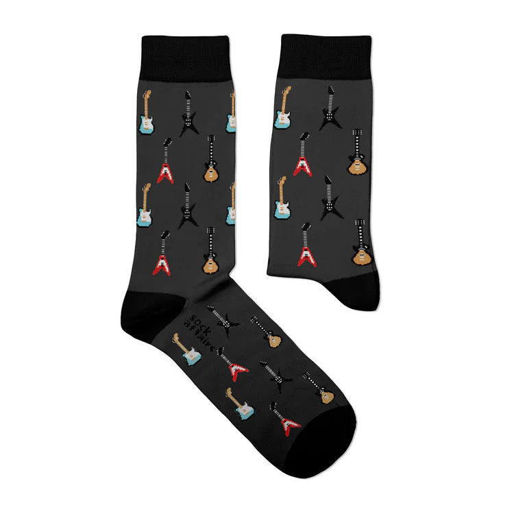 Für alle, die den Sound nicht nur hören, sondern auch tragen wollen: die Six String Socks mit Gitarrenmotiven.